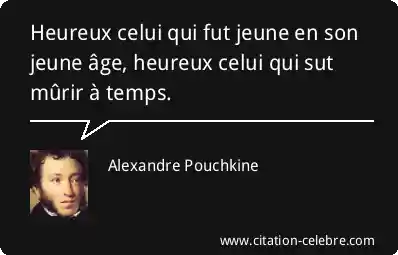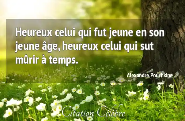 Heureux celui qui fut jeune en son jeune âge, heureux celui qui sut mûrir à temps.