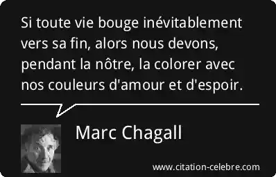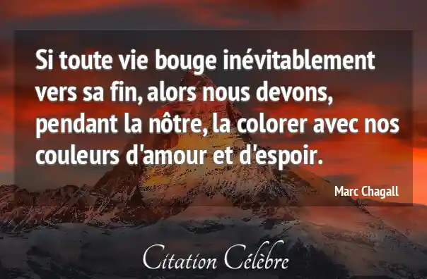 Si toute vie bouge inévitablement vers sa fin, alors nous devons, pendant la nôtre, la colorer avec nos couleurs d'amour et d'espoir.