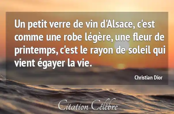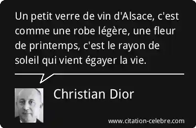 Un petit verre de vin d'Alsace, c'est comme une robe légère, une fleur de printemps, c'est le rayon de soleil qui vient égayer la vie.