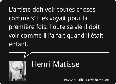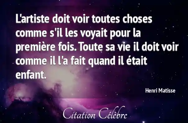 L'artiste doit voir toutes choses comme s'il les voyait pour la première fois. Toute sa vie il doit voir comme il l'a fait quand il était enfant.
