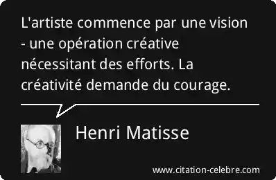L'artiste commence par une vision - une opération créative nécessitant des efforts. La créativité demande du courage.