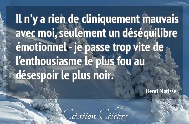Il n'y a rien de cliniquement mauvais avec moi, seulement un déséquilibre émotionnel - je passe trop vite de l'enthousiasme le plus fou au désespoir le plus noir.