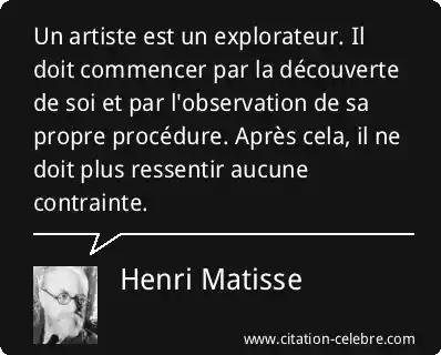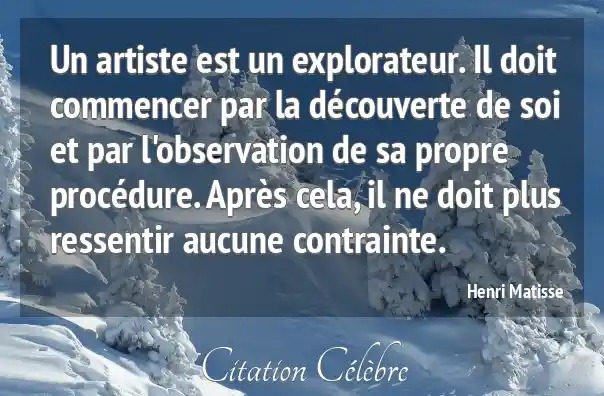 Un artiste est un explorateur. Il doit commencer par la découverte de soi et par l'observation de sa propre procédure. Après cela, il ne doit plus ressentir aucune contrainte.