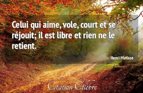 Citation Henri Matisse rien : Celui qui aime, vole, court et se réjouit; il est...