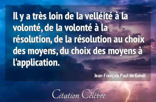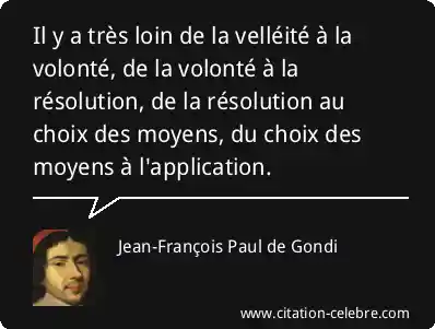 Il y a très loin de la velléité à la volonté, de la volonté à la résolution, de la résolution au choix des moyens, du choix des moyens à l'application.