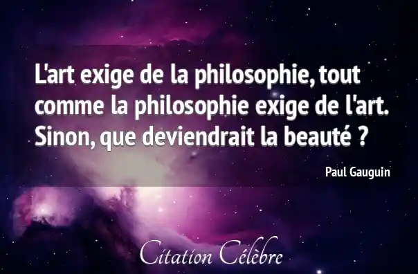 L'art exige de la philosophie, tout comme la philosophie exige de l'art. Sinon, que deviendrait la beauté ?