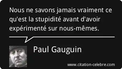 Citation Paul Gauguin avoir : Nous ne savons jamais vraiment ce qu'est la stupidité avant...