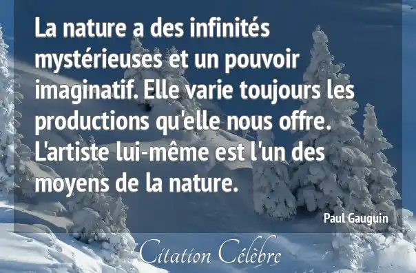 La nature a des infinités mystérieuses et un pouvoir imaginatif. Elle varie toujours les productions qu'elle nous offre. L'artiste lui-même est l'un des moyens de la nature.