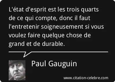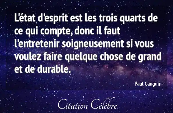 L'état d'esprit est les trois quarts de ce qui compte, donc il faut l'entretenir soigneusement si vous voulez faire quelque chose de grand et de durable.