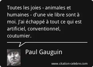 Toutes les joies - animales et humaines - d'une vie libre sont à moi. J'ai échappé à tout ce qui est artificiel, conventionnel, coutumier.