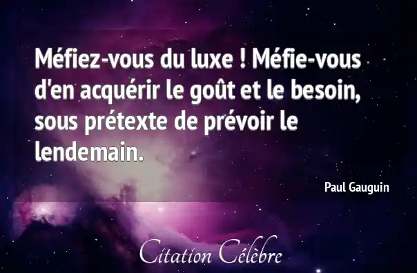 Méfiez-vous du luxe ! Méfie-vous d'en acquérir le goût et le besoin, sous prétexte de prévoir le lendemain.