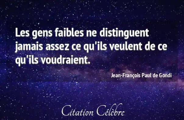 Les gens faibles ne distinguent jamais assez ce qu'ils veulent de ce qu'ils voudraient.