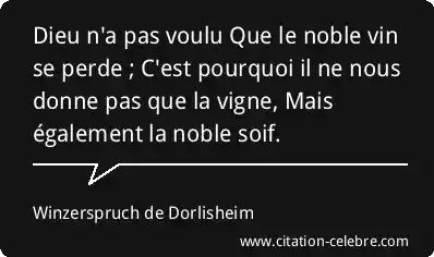 Dieu n'a pas voulu Que le noble vin se perde ; C'est pourquoi il ne nous donne pas que la vigne, Mais également la noble soif.