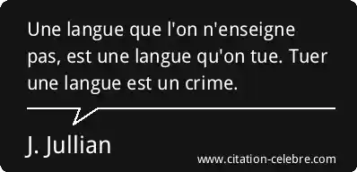 Citation J. Jullian langue : Une langue que l'on n'enseigne pas, est une langue qu'on...