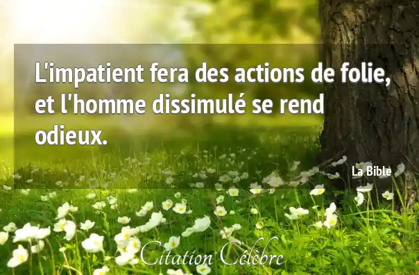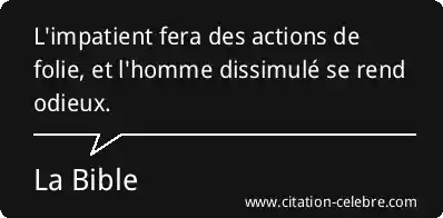 Citation La Bible homme : L'impatient fera des actions de folie, et l'homme dissimulé se...