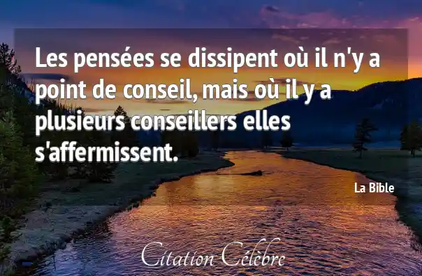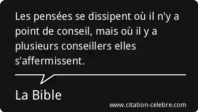 Les pensées se dissipent où il n'y a point de conseil, mais où il y a plusieurs conseillers elles s'affermissent.