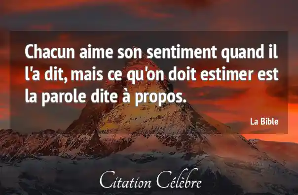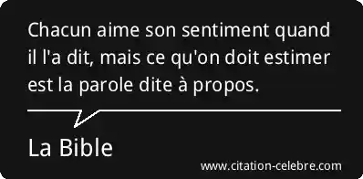 Chacun aime son sentiment quand il l'a dit, mais ce qu'on doit estimer est la parole dite à propos.