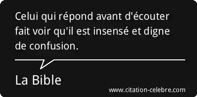 Celui qui répond avant d'écouter fait voir qu'il est insensé et digne de confusion.