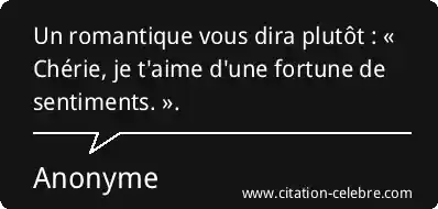 Un romantique vous dira plutôt : « Chérie, je t'aime d'une fortune de sentiments. ».