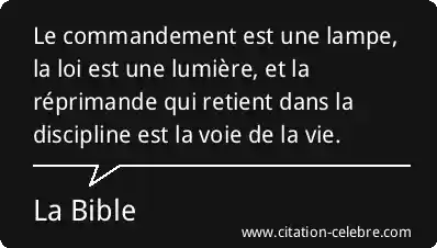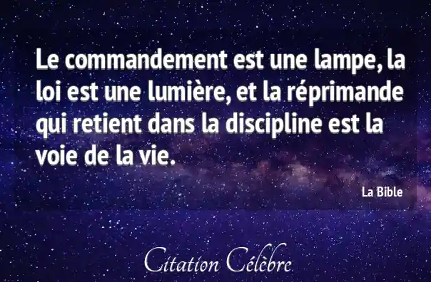 Le commandement est une lampe, la loi est une lumière, et la réprimande qui retient dans la discipline est la voie de la vie.