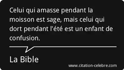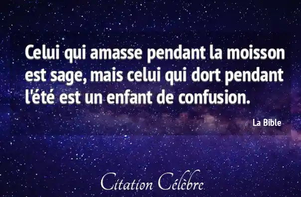 Celui qui amasse pendant la moisson est sage, mais celui qui dort pendant l'été est un enfant de confusion.