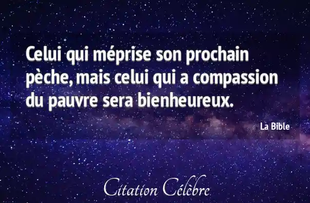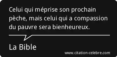 Celui qui méprise son prochain pèche, mais celui qui a compassion du pauvre sera bienheureux.