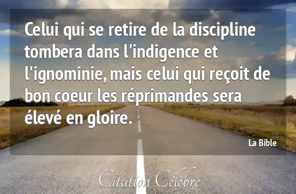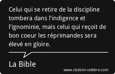 Celui qui se retire de la discipline tombera dans l'indigence et l'ignominie, mais celui qui reçoit de bon coeur les réprimandes sera élevé en gloire.