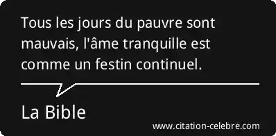 Tous les jours du pauvre sont mauvais, l'âme tranquille est comme un festin continuel.