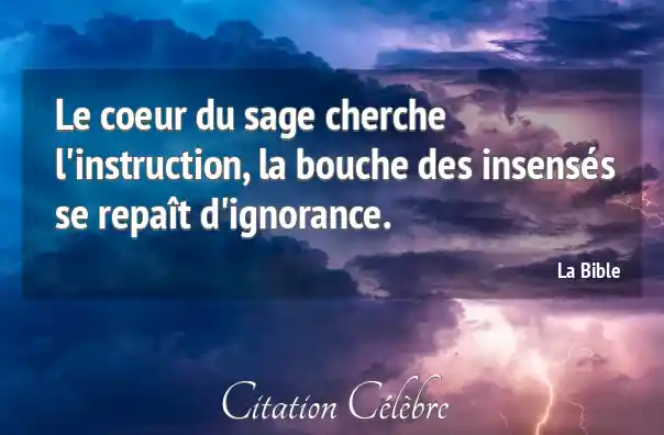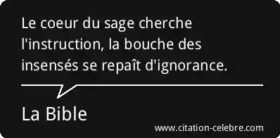 Le coeur du sage cherche l'instruction, la bouche des insensés se repaît d'ignorance.