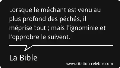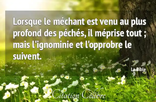 Lorsque le méchant est venu au plus profond des péchés, il méprise tout ; mais l'ignominie et l'opprobre le suivent.