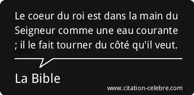 Le coeur du roi est dans la main du Seigneur comme une eau courante ; il le fait tourner du côté qu'il veut.