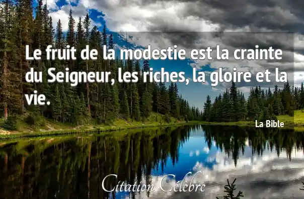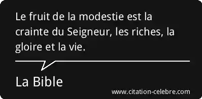 Le fruit de la modestie est la crainte du Seigneur, les riches, la gloire et la vie.