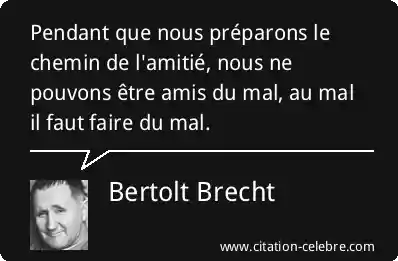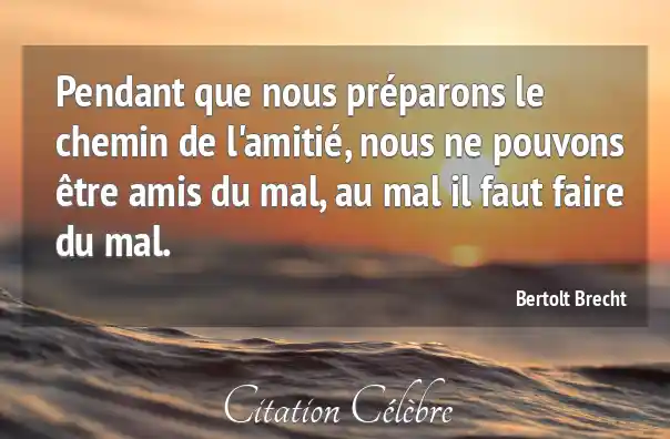 Pendant que nous préparons le chemin de l'amitié, nous ne pouvons être amis du mal, au mal il faut faire du mal.