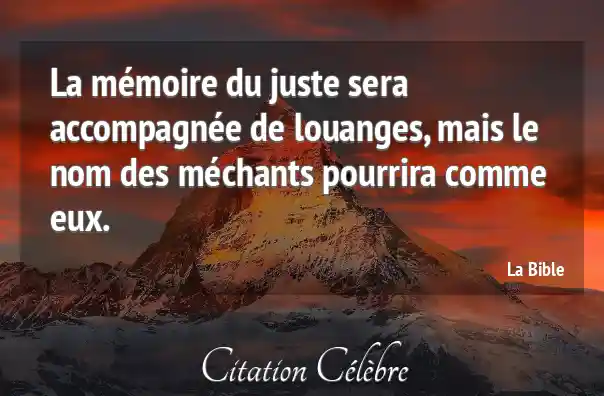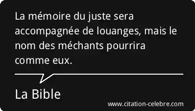La mémoire du juste sera accompagnée de louanges, mais le nom des méchants pourrira comme eux.