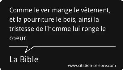 Comme le ver mange le vêtement, et la pourriture le bois, ainsi la tristesse de l'homme lui ronge le coeur.