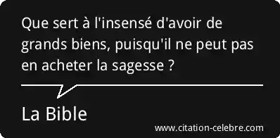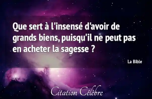 Que sert à l'insensé d'avoir de grands biens, puisqu'il ne peut pas en acheter la sagesse ?