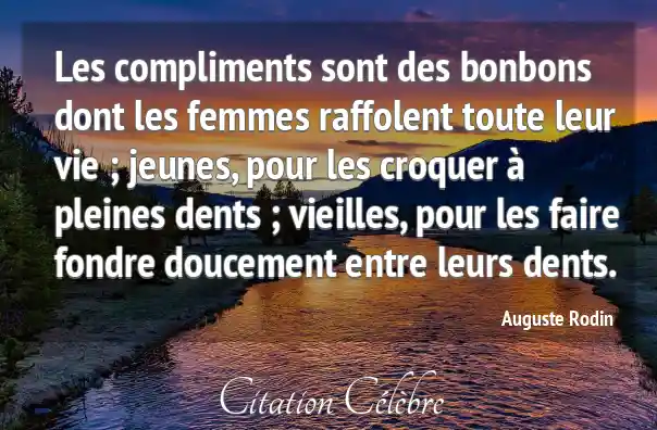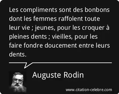 Les compliments sont des bonbons dont les femmes raffolent toute leur vie ; jeunes, pour les croquer à pleines dents ; vieilles, pour les faire fondre doucement entre leurs dents.