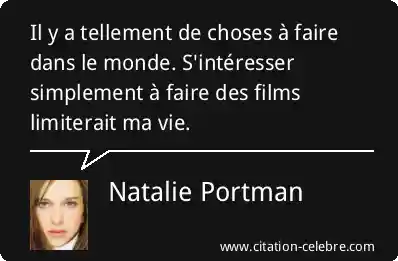 Il y a tellement de choses à faire dans le monde. S'intéresser simplement à faire des films limiterait ma vie.