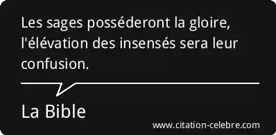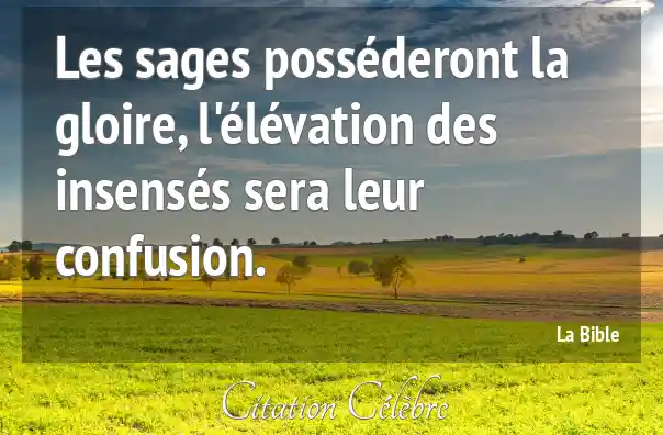 Les sages posséderont la gloire, l'élévation des insensés sera leur confusion.