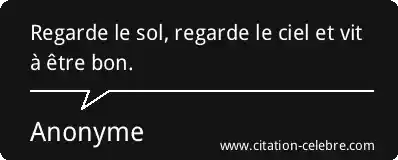 Regarde le sol, regarde le ciel et vit à être bon.