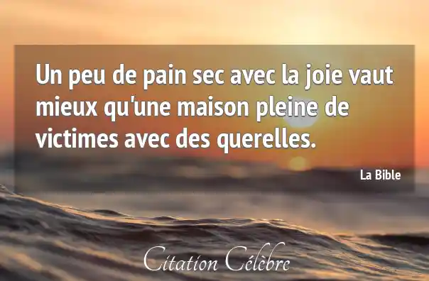 Un peu de pain sec avec la joie vaut mieux qu'une maison pleine de victimes avec des querelles.