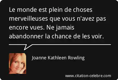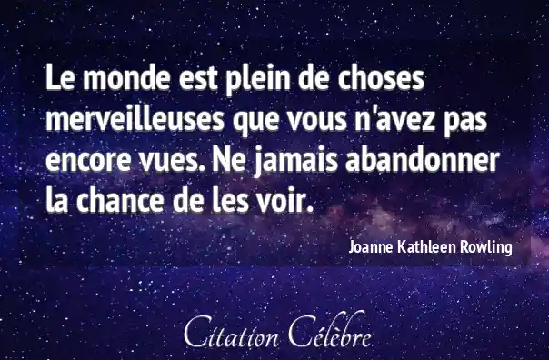 Le monde est plein de choses merveilleuses que vous n'avez pas encore vues. Ne jamais abandonner la chance de les voir.