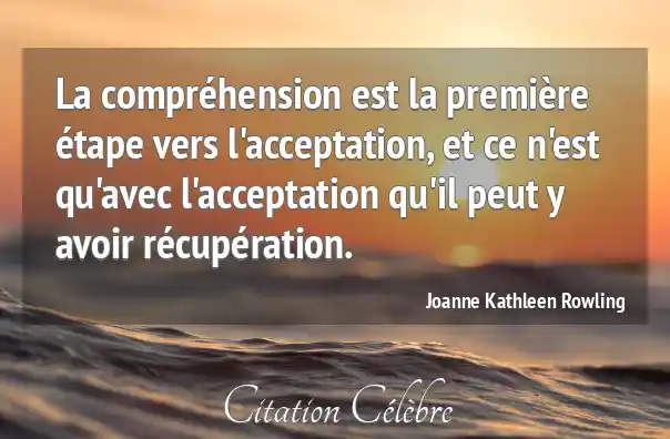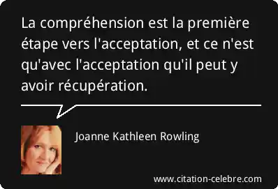 La compréhension est la première étape vers l'acceptation, et ce n'est qu'avec l'acceptation qu'il peut y avoir récupération.