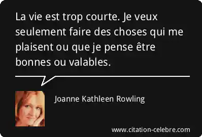 La vie est trop courte. Je veux seulement faire des choses qui me plaisent ou que je pense être bonnes ou valables.