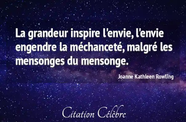 La grandeur inspire l'envie, l'envie engendre la méchanceté, malgré les mensonges du mensonge.