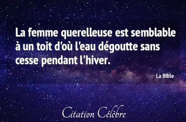 La femme querelleuse est semblable à un toit d'où l'eau dégoutte sans cesse pendant l'hiver.
