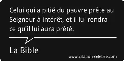 Celui qui a pitié du pauvre prête au Seigneur à intérêt, et il lui rendra ce qu'il lui aura prêté.