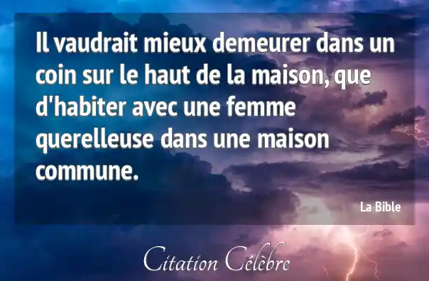 Il vaudrait mieux demeurer dans un coin sur le haut de la maison, que d'habiter avec une femme querelleuse dans une maison commune.