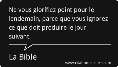 Ne vous glorifiez point pour le lendemain, parce que vous ignorez ce que doit produire le jour suivant.
