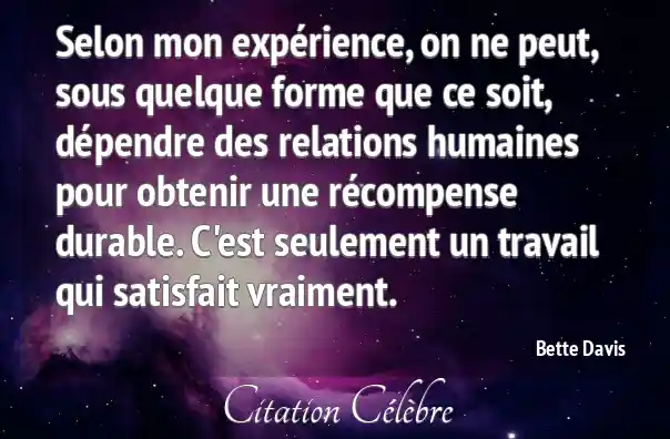 Selon mon expérience, on ne peut, sous quelque forme que ce soit, dépendre des relations humaines pour obtenir une récompense durable. C'est seulement un travail qui satisfait vraiment.